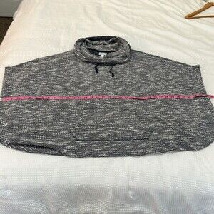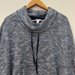 Sunday Cowl Neck Poncho Top Knit Pullover Oversized Small Beachy Cape Layer Blue