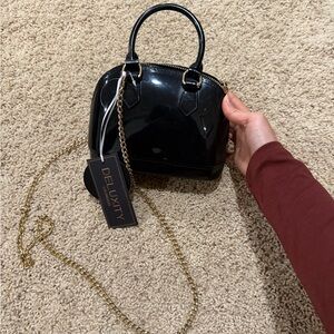 Elevate your style with the black handbag. Featuring a sleek design and a chic gold chain, this bag is perfect for any occasion. Waterproof and great for travel.