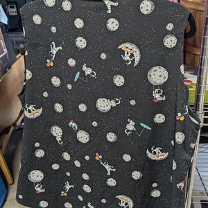 Explore the cosmos in style with this black sleeveless top featuring a playful astronaut print. Perfect for casual outings or a fun night out.