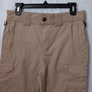 Size 6/30 Women's Galls Elite Ops Tactical Pants has multiple pockets, elastic waistband, and reinforced knee in the color tan.The material content is provided in photos in gently used preowned condition. Style# TJ305