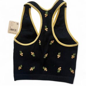 Stylish black crop top with floral embroidery, perfect for any casual outing.