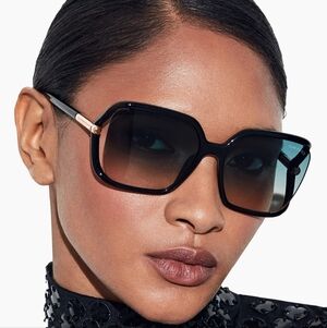 Chic Tom Ford sunglasses with a bold black frame. Gold accents add elegance. Perfect for a modern look. worn 2ce