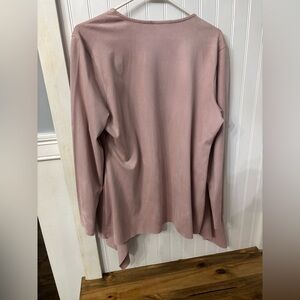 Chic blush pink poncho. Soft fabric with flowing design. Perfect for layering.