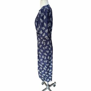 Late 80s/Early 90s does 40s Liz Claiborne Puff Sleeves Front Button Closure Day Dress, with hip pockets & shoulder pads that can easily be removed, in excellent used condition. Measurements: bust 37.5”/waist 28”/hips 40”/length 47.5”