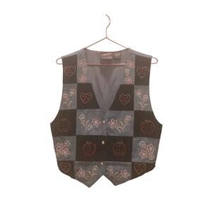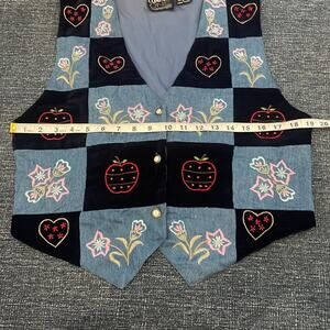 Vintage Denim Vest Velvet Patchwork Embroidery - Size Large