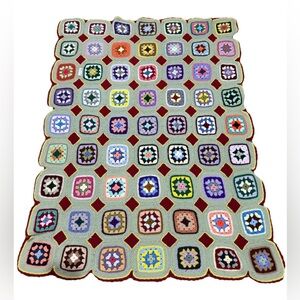 Vtg Handmade Colorful Granny Square Crochet Afghan Blanket Throw Style 60”x45”