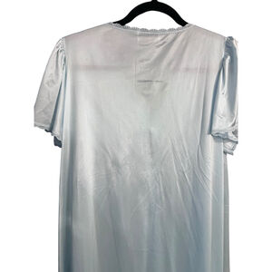 Vanity Fair Vintage Blue Nylon Nightgown M Lace Button Front 70s Cottagecore