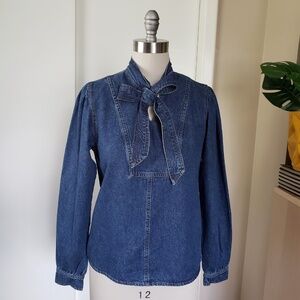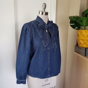 Design/Details: Chic and stylish tie front Steve Madden denim top with billowy button cuff sleeves.