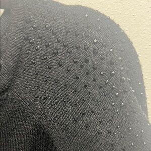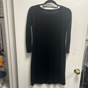 Chic black dress with long sleeves. Features embellished shoulders. Perfect for versatile styling.