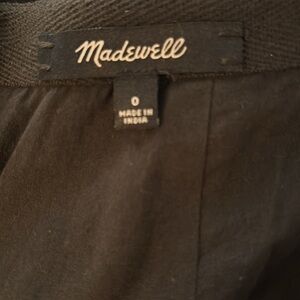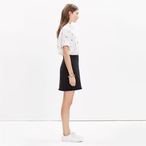 This sleek black pencil skirt from Madewell is designed for both work and casual settings. Its mini length and structured silhouette offer a modern, professional look. Crafted with a minimalist approach, this versatile piece is a wardrobe essential.