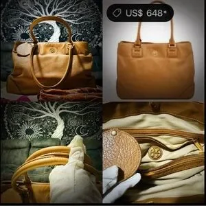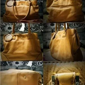 Tory Burch Tan Leather Tote with orange gold cherry keychain Charm , good condition, other people sale $558-$648, I only do low price $189, conditions still good , is big sale deal , large size, good soft leather, buy this Tory Burch tote bag will give you one brand new big cherry keychain for free , orange color keychain no more , have red cherry keychain , green color, pink color, gold color, pick one color, and will give you one brand new dusty bag for free too, she is so pretty , you can put in all your make up , can put in computer and iPad too , is perfect for every day work or school and the meeting , she is so pretty , she’s ready go to your house , everything on pictures , Chic Tory Burch tote in tan leather. Features a playful charm. Ideal for versatile
