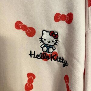 Hello Kitty Women Sanrio Light Pink Zip Up Hoodie Bows Pattern Sz XXL