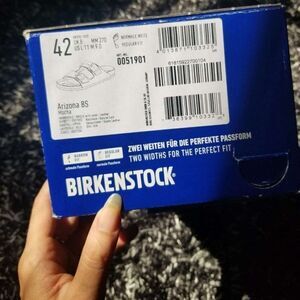 Brand new in box, never worn just tried on. I'm only selling them because I didn't realize they were genuine animal leather until after I had already purchased. My chiropodist poked an extra hole in the 2nd strap because it's natural leather and will stretch over time so additional holes are eventually needed (There are 6 holes). Size 42 which is a US/CA men's 9-9.5 or women's 11-11.5.