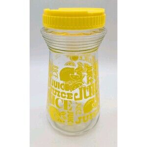 Vintage Anchor Hocking Juice Jar Jug Yellow Flip Top Lid LEMON Design 24oz USA