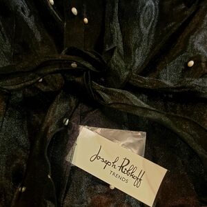 Perfect for holiday parties, NYE, or date nights. Smoke-free home. Bundle & save! 🥂 #JosephRibkoff #SheerBlouse #PearlEmbellished #BellSleeves #HolidayGlam