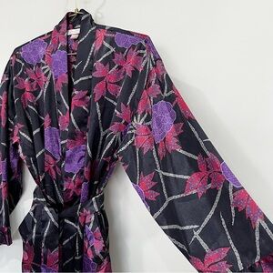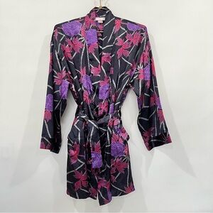 Victoria's Secret Floral Patterned Kimono Robe Size One Size Black Purple