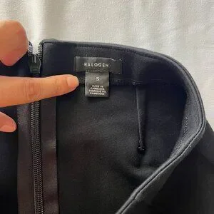 The product is a pair of Halogen women's black elastic band pants in size small. These pants feature a zip closure, skinny leg style, and are made of nylon, spandex, and rayon. They are suitable for workwear and are in a classic black color. The pants are designed for a regular size and are ideal for wearing in the summer, fall, and spring seasons. With a sleek jegging style and a band theme, these pants offer both style and comfort for everyday wear.