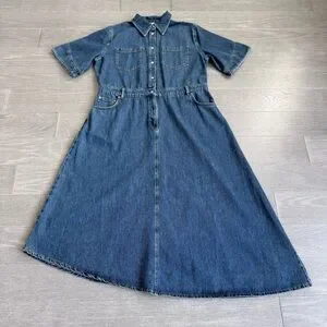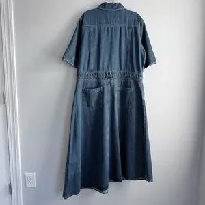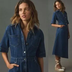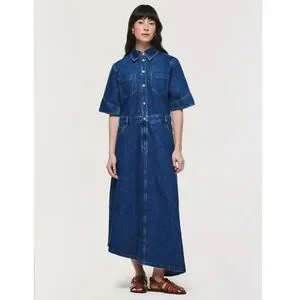 ALIGNE Mateo Short Sleeve Asymmetric Denim Midi Shirt Dress 12 Anthropologie