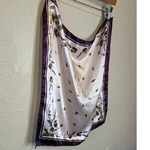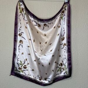 VTG Silky Cottage Core Floral Purple & White Square Neck Scarf