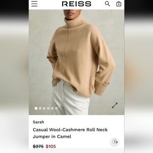 Reiss Casual Wool-Cashmere Roll Neck Jumper in Camel