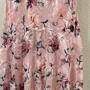 * Sleeveless, woven textured "burnout" chiffon in floral pink, burgundy, peach multi