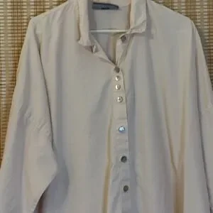 Eleven Stitch Design Womens XL Top Cream Button Up Bohemian Casual 3/4 Sleeves