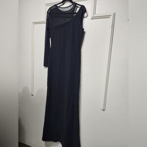 Lulus New Infatuation Black Mesh Asymmetrical Mermaid Maxi Dress L Wedding Party