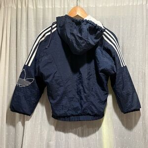 Vintage 90s Adidas Classic Big Trefoil Logo Hooded Jacket Youth S VTG RARE Navy