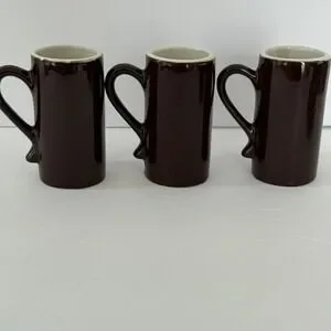 Vintage Brown Ceramic Tall Coffee Mugs Set of 3