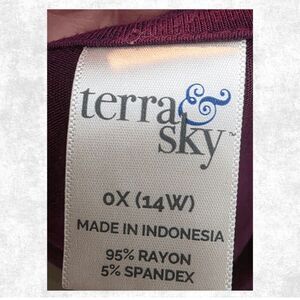 In great pre-owned condition, this Terra & Sky tunic tee in a rich plum-purple shade is a versatile essential for any plus-size wardrobe. Crafted from a soft, breathable rayon-spandex blend, it offers gentle stretch and a flowy, flattering drape that’s perfect for everyday wear.