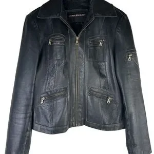 Charles Klein Moto Bomber Leather Jacket Coat