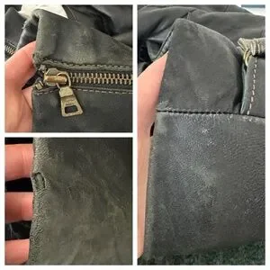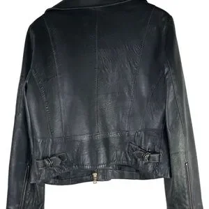 Charles Klein Moto Bomber Leather Jacket Coat Womens Sz Large Black Zip Up