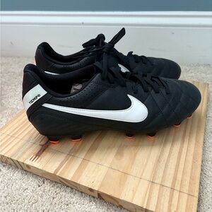 Keywords: Nike, Tiempo, soccer cleats, black, size 7.5, firm ground, sports, athletic, comfortable, durable, competitive, casual, game, control, stability.