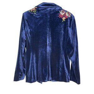 COLLEEN LOPEZ Women's Blue Floral Embroidered Velvet Blazer NWT Medium