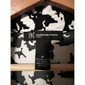 INC Women's V-Neck Faux-Wrap Houndstooth Black & White Dress Petite Medium