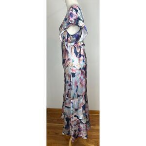 NWT Rails Dina Midnight Verbena Floral Maxi V-Neck Satin Dress S Flutter Sleeve