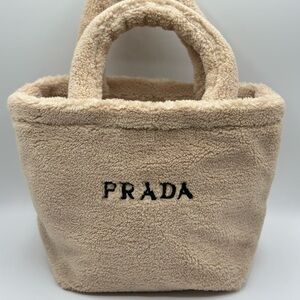 Elegant Prada tote in soft cream sherpa. Features plush texture and durable handles. NWOT unbranded it does bag provided.