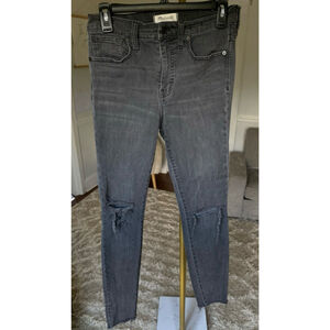 Madewell 9” High Rise Skinny Jeans Denim Grayish Black Distressed 28 Vintage Fit