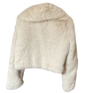 AKIRA NWT Stunning Cream Faux Fur Collared Cropped Lined Teddy Jacket (0723)