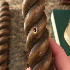 Beautiful wooden salvaged set of three barley wood spindles. These are perfect to display in pitchers or baskets as shown but not included. Two are the same height, one is slightly shorter.