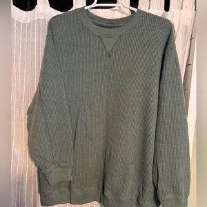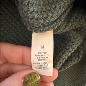 Comfy and warm oversized forest green waffle weave women’s sweater from Aerie.