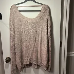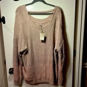 New Barefoot Dreams CozyChic Boucle scoop back Pullover faded Rose Size 3X