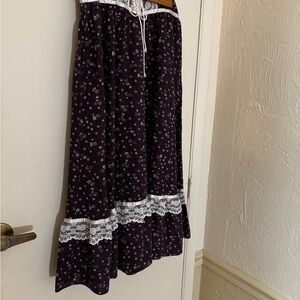 Charming floral dress by Jessica's Gunnies. Features a beautiful mix of purple and white flowers. Gunnies by Jessica is an early branding of the famous Gunne Sax by Jessica clothing line. Own a piece of history with this stunning skirt!