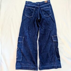 Wide-Leg Blue Jeans with Cargo Pockets Size 31 BDG