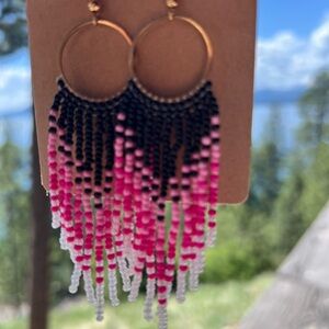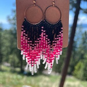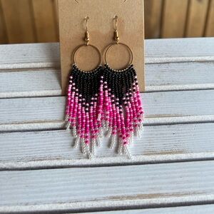 New Pink White Black Hand Beaded tassel boho western tribal earring jewelry gift