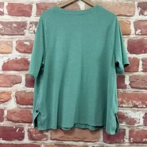 J Jill Pure Jill Top Women's 2X Aqua Green Hemp Blue Cotton Slubbed Casual Shirt