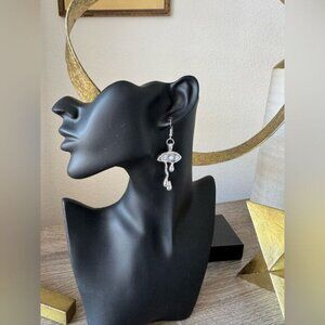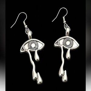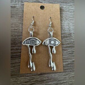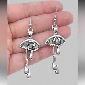 These artistic silver earrings feature a striking eye motif with elegant drop details, perfect for enhancing your style with a unique touch.