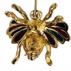 This colorful little brooch is one of Joan Rivers Bee brooches. It has transparent colors in red, blue, green and purple as well as tiny rhinestones in these colors all in a quality gold-tone setting. It measures approximately 7/8” long by 1 1/8” wide.