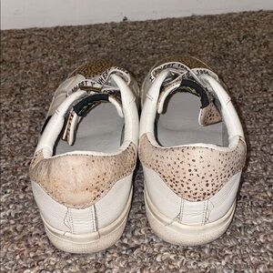Trendy sneakers with leopard print accents. Comfortable and stylish for everyday wear. Lace-up design with unique detailing.