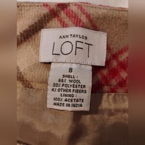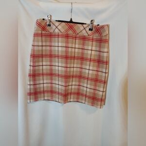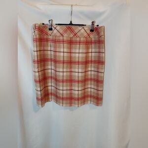 LOFT Preppy Tan and Red Wool Blend Plaid Mini Skirt With Side Zip